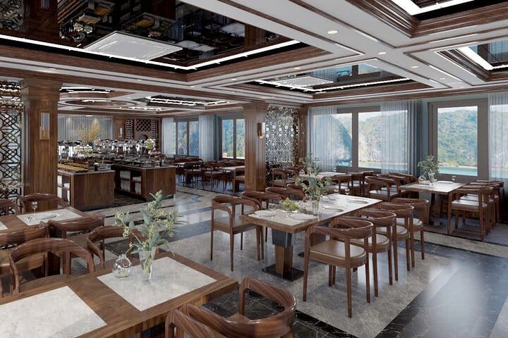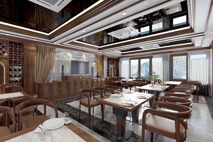 Cong Cruise is proud to be the FIRST 1-DAY CRUISE in Halong Bay, with a 7-hour itinerary packed with activities for passengers to experience the most breathtaking vistas of Ha Long Bay, including Sung Sot Cave, kayaking to Trinh Nu Cave for a cave adventure, swimming at Trinh Nu Beach, and taking in the view of Ti Top Island. Cong Cruise offers passengers the option to thoroughly experience the ancient Vietnamese culture with furnishings and décor that are reminiscent of Vietnam's subsidized economy time, in addition to the cruise's distinctive itinerary.