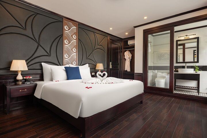For younger visitors, the Oasis Bay Cruise, one of the biggest vessels in Halong Bay, offers a distinctive experience. Along with exhilarating sports like beach volleyball, football, boat jumping, swimming, kayaking, and water trampolining, it provides a stunning tour of Halong Bay. If you're looking for gorgeous scenery, excitement, and new acquaintances, our party and activity package allows you to visit well-known places like Cat Ba Island, Viet Hai Village, and more. The Oasis Bay Cruise, which made its debut in September 2017, is guaranteed to make a lasting impression on your Vietnam holiday thanks to its cutting-edge technology.