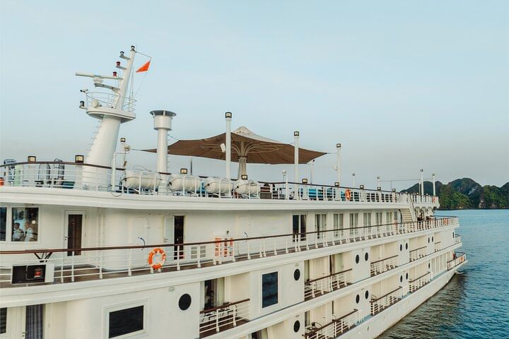 Join Our Cruise for an extraordinary day journey, the largest cruise in Halong Bay. Experience the breathtaking beauty of this UNESCO World Heritage site, explore hidden gems, and relish delicious meals. Unwind on the sundeck amidst stunning landscapes and make cherished memories that will last a lifetime. Don't miss this unparalleled experience!